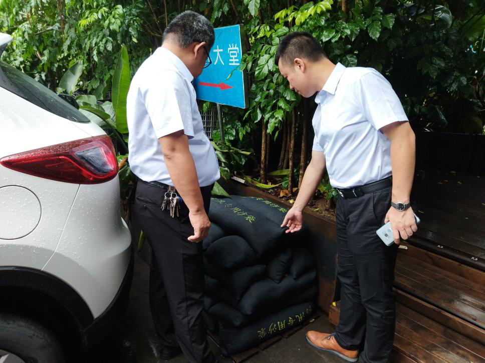 閩越公司組織在建項(xiàng)目和出租房產(chǎn)隱患排查,對頂樓水塔、地下室防積水和排水系統(tǒng)等進(jìn)行檢查,要求施工方暫停施工,備好防澇物資和安排值守人員,通知負(fù)層租戶做好防澇準(zhǔn)備工作。