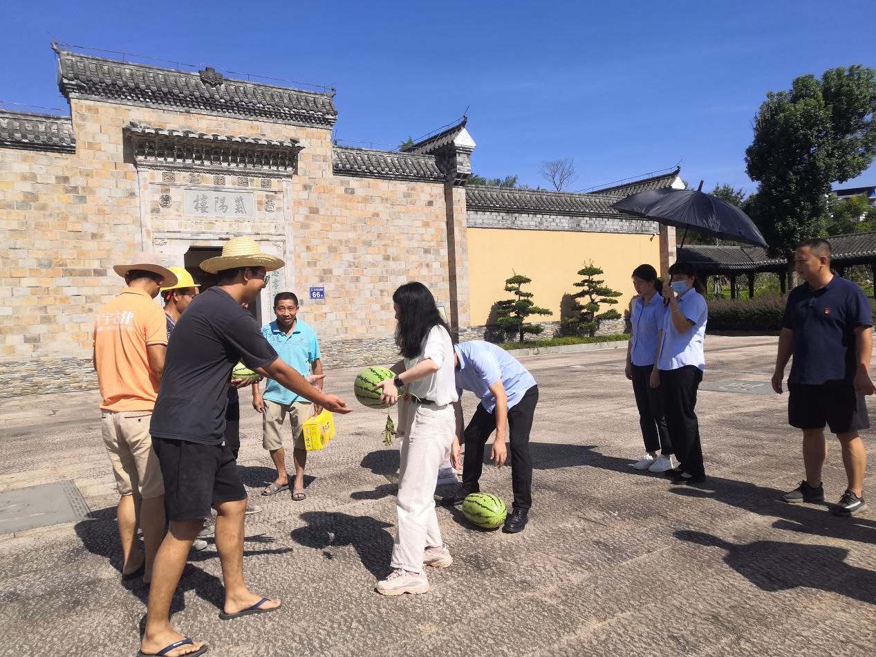 今年7月以來,五夫古鎮(zhèn)持續(xù)高溫,為進(jìn)一步做好暑期安全生產(chǎn)、防暑降溫工作,確保一線工作者的身心健康。8月24日上午,朱子公司黨支部全體黨員走進(jìn)文公山、紫陽樓、游客中心項(xiàng)目部工地,開展“炎炎夏日送清涼”主題黨日活動,為一線工人帶去西瓜、涼茶、正氣水等慰問物品,把清涼送到項(xiàng)目一線,把黨組織的關(guān)懷送到了工人們的手上。