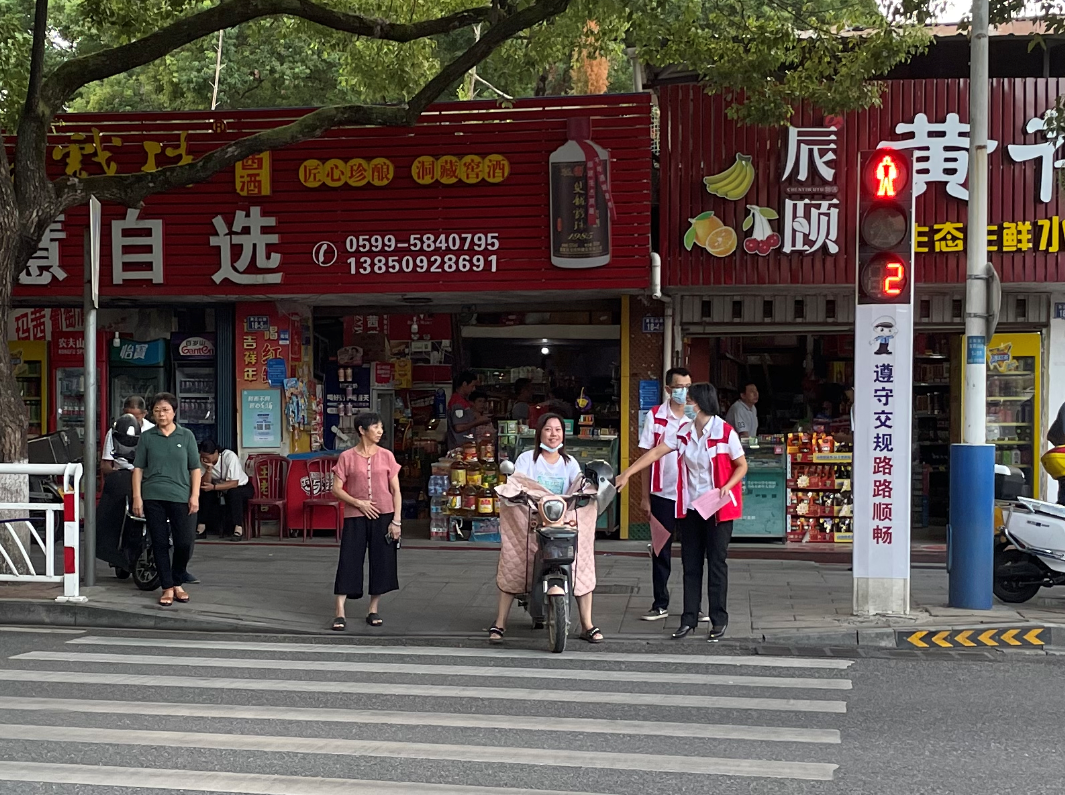 黨員志愿者們身著紅色馬甲,向來往行人發(fā)放《珍愛生命 文明出行》宣傳單,在路口、斑馬線前,引導(dǎo)車輛、行人安全文明通行,對摩托車駕駛員未戴安全頭盔、闖紅燈、不按道行駛等違法行為進(jìn)行勸導(dǎo),制止非機(jī)動車亂穿亂行等行為,對老人、兒童等過馬路提供幫助,以實際行動倡導(dǎo)文明新風(fēng)尚。通過交通文明勸導(dǎo)志愿服務(wù)活動,充分發(fā)揮黨員先鋒模范作用,促進(jìn)群眾養(yǎng)成良好的出行習(xí)慣,保護(hù)自身生命安全,進(jìn)一步增強(qiáng)廣大居民朋友的交通安全意識,為黨的二十大勝利召開營造安全暢通、文明和諧的道路交通環(huán)境。