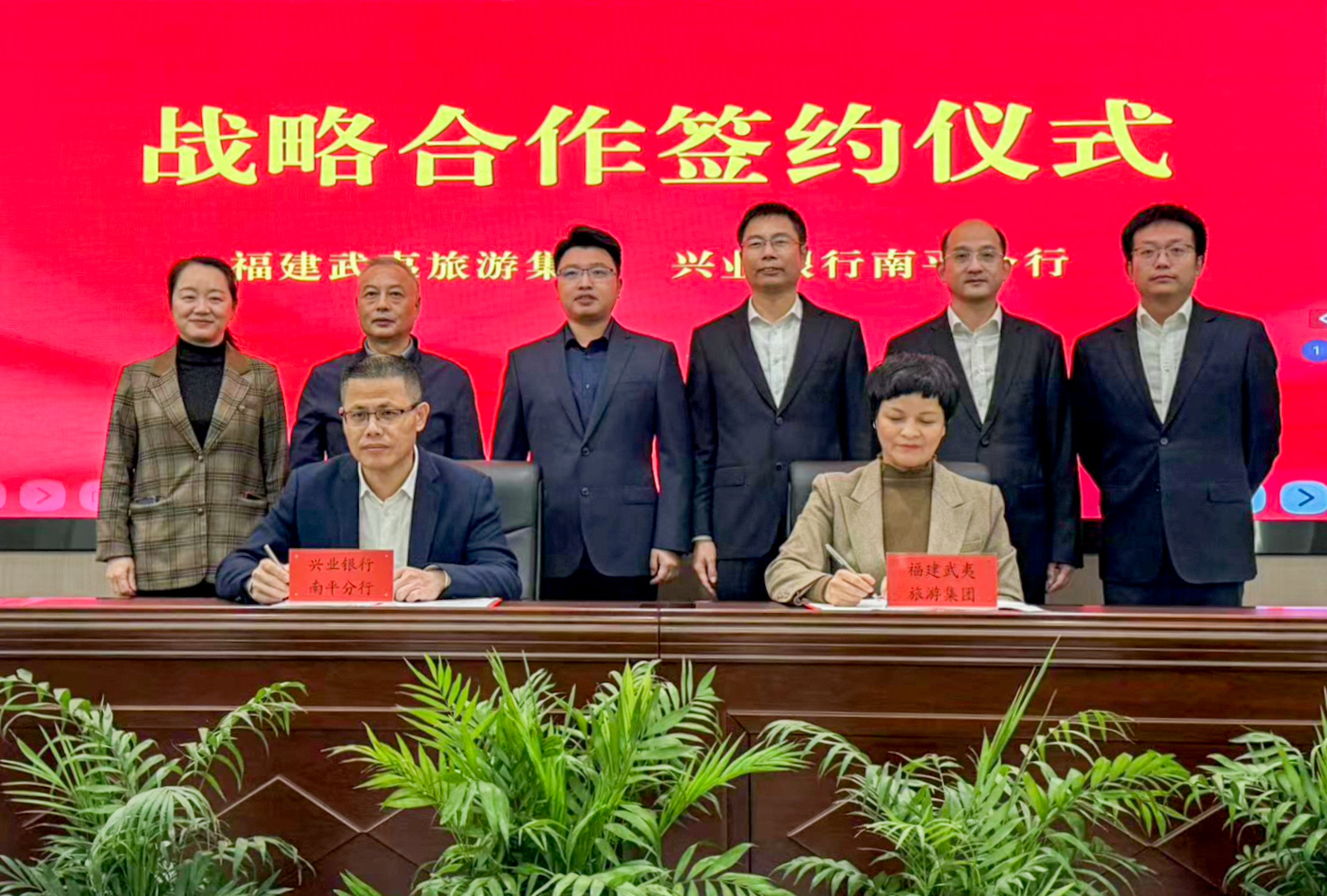 11月14日,武夷旅游集團與興業(yè)銀行南平分行簽署戰(zhàn)略合作協(xié)議。集團黨委書記、董事長葉厚德,興業(yè)銀行南平分行行長蔡明華出席并見證簽約,集團總經(jīng)理許周妹、興業(yè)銀行南平分行副行長王明志代表雙方簽約。