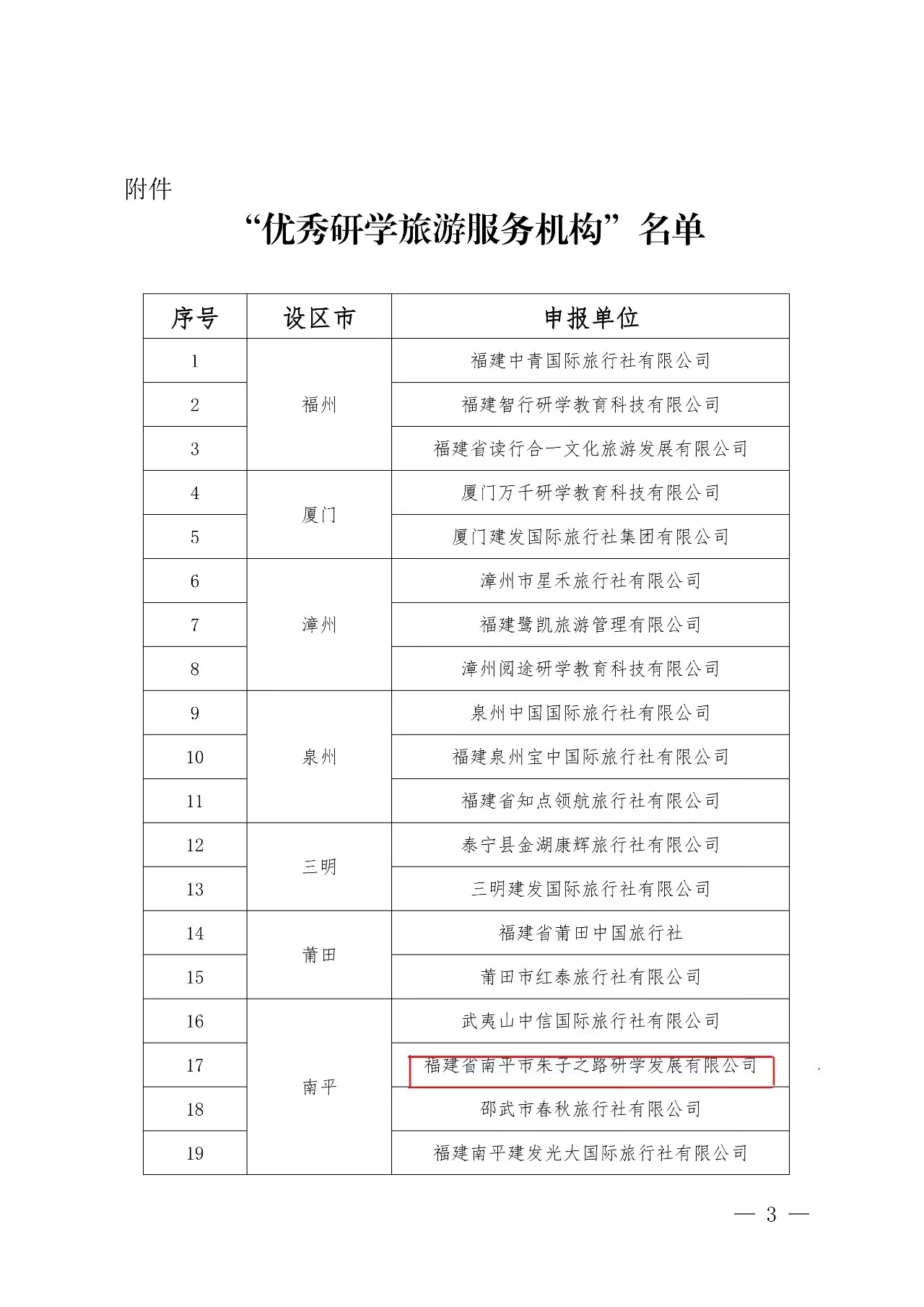 近日 福建省文化和旅游廳公布 關(guān)于“優(yōu)秀研學(xué)旅游服務(wù)機(jī)構(gòu)”評(píng)選結(jié)果 福建省南平市朱子之路研學(xué)發(fā)展有限公司 成功入選!