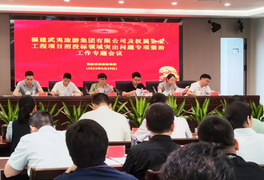 6月28日,武夷旅游集團召開工程項目招投標領域突出問題專項整治工作部署會,集團黨委書記、董事長葉厚德出席會議并講話,集團領導班子成員、本部中層干部、各子企業(yè)負責人參加會議。會議由集團總經理許周妹主持。
