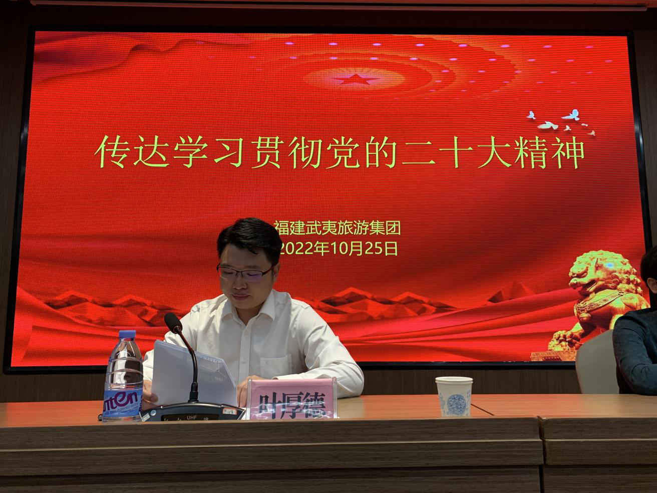 10月25日,福建武夷旅游集團(tuán)黨委書記、董事長葉厚德主持召開干部職工會議,迅速傳達(dá)學(xué)習(xí)黨的二十大精神,以及省委、市委常委會(擴(kuò)大)會議部署要求,對集團(tuán)學(xué)習(xí)宣傳貫徹黨的二十大精神工作作出部署。集團(tuán)領(lǐng)導(dǎo)班子成員、在潭子企業(yè)負(fù)責(zé)人、集團(tuán)本部全體員工參加會議。