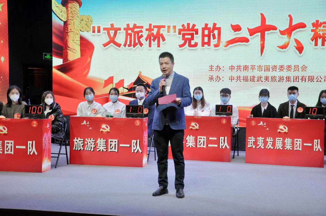 為深入學(xué)習(xí)宣傳貫徹黨的二十大精神,在廣大干部職工中營造以賽促學(xué)、以學(xué)促行的濃厚氛圍,12月16日下午由旅游集團(tuán)黨委承辦國資系統(tǒng)“文旅杯”黨的二十大精神知識競賽在南平市大劇院正式開賽。市國資委副主任陳昶出席競賽并致辭,本次競賽邀請市國資委黨辦有關(guān)人員擔(dān)任評委,來自市屬國企8支代表隊共24名隊員同臺競技。