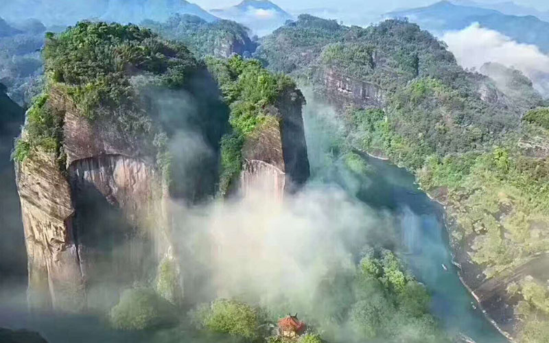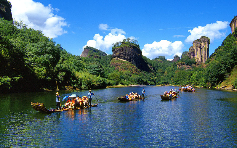 【世界文化與自然雙遺產(chǎn)——武夷山】 位于武夷山市南郊,素有“碧水丹山”、“奇秀甲東南”之美譽(yù),是大武夷旅游圈的核心景區(qū),國(guó)家AAAAA級(jí)旅游景區(qū)。武夷山集道、佛、儒教于一身,是一座歷史悠久的文化名山,秦漢以來(lái),為歷代朝延所推崇,唐朝時(shí)被冊(cè)封為天下名山大川;是全球生物多樣性保護(hù)的關(guān)鍵地區(qū),是尚存的珍稀、瀕危物種的棲息地,有“動(dòng)物樂園”、“昆蟲世界”、“鳥的天堂”、“世界生物之窗”“天然植物園”等美稱。九曲溪、天游峰、玉女峰、大王峰……“三三秀水清如玉,六六奇峰翠插天”,構(gòu)成了奇幻百出的武夷山水之勝。